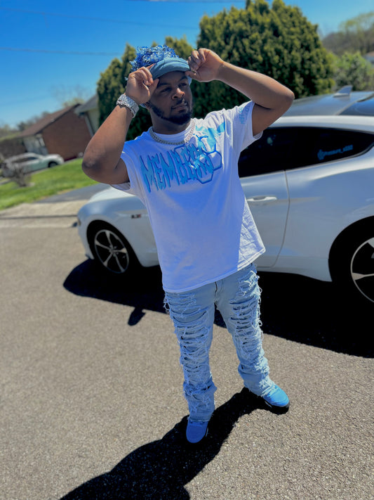 White & Blue “Honeycomb “ Shirt